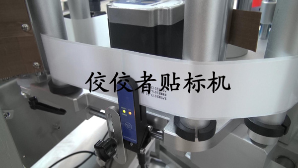 上圖展示的是第一次貼標,即對塑料圓瓶進行頂部的貼標,和平面貼標機的貼標頭是一樣的。下面到了第二次貼圓瓶側標這一步了,在這之前還需要對標簽進行打碼,請看下圖: