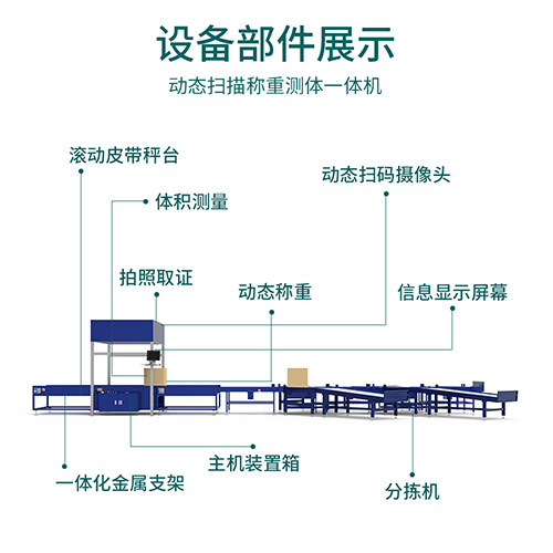 DWS設備其實用中文翻譯過來就是集稱重掃碼。測體積一體的一臺設備。這臺設備可以對接系統(tǒng),實時上傳數(shù)據(jù)。如果有需求的話,還可以添加分揀功能,根據(jù)您的需求添加多個分揀口,掃碼以后將貨物分揀到您指定的出口處統(tǒng)一管理。